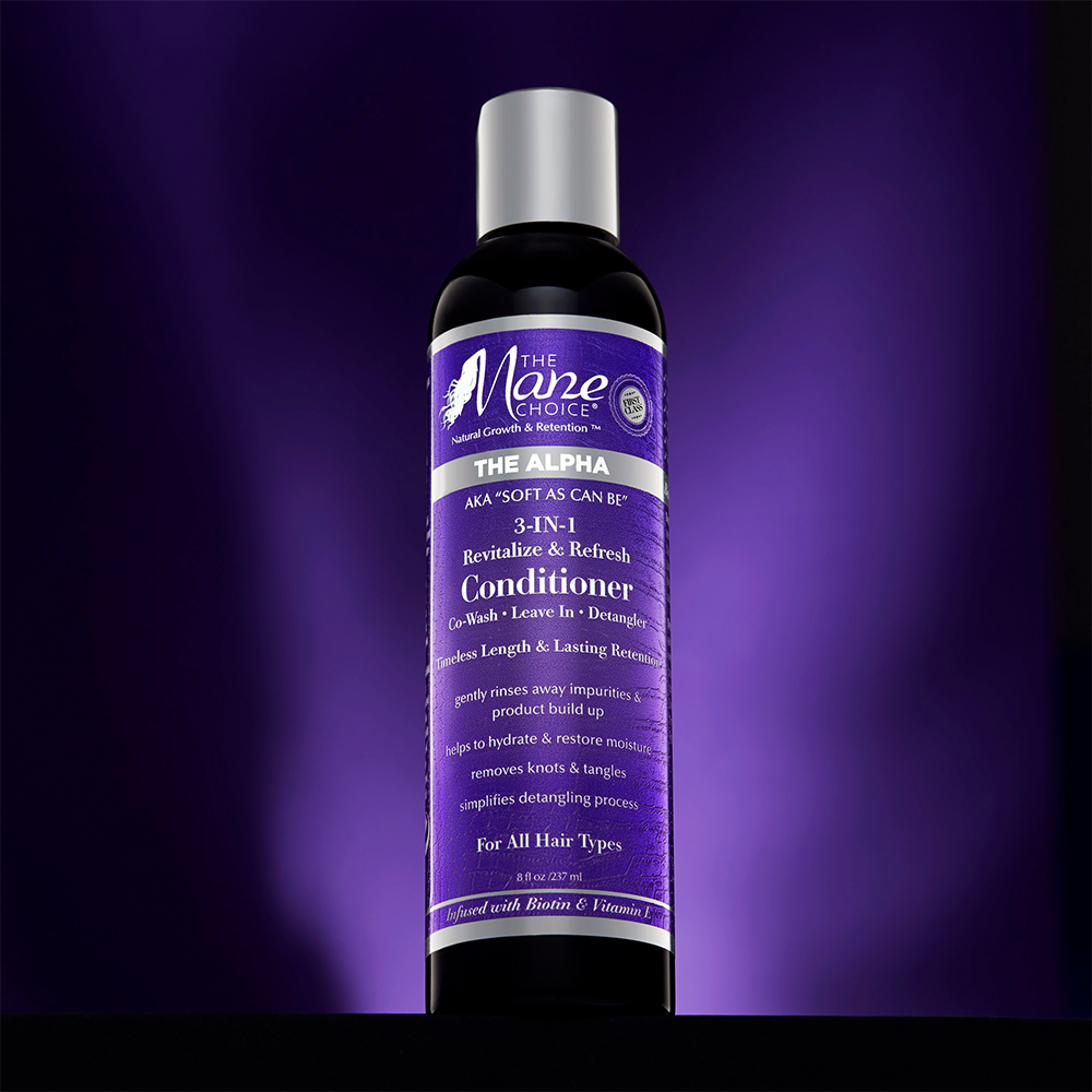 The Mane Choice The Alpha Soft As Can Be Revitalize & Refresh 3-in-1, è un co-wash delicato sui ricci, un balsamo senza risciacquo e un districante tutto in uno! Risciacqua via le impurità, idrata, ripristina l'umidità e facilita il processo districante!